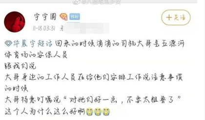 粉丝还称,华晨宇不忘叮嘱工作人员对粉丝好一点。
