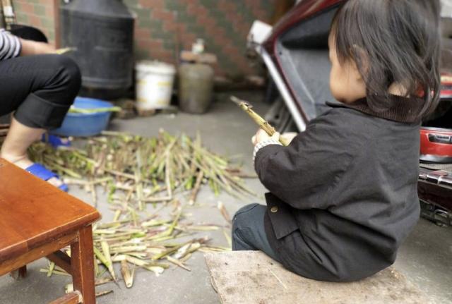 在外婆的院子里,小小丹曾经还帮忙一起剥笋。