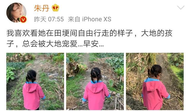 11月9日,朱丹分享了女儿的萌照,并十分宠溺地说道:我喜欢看她在田埂间自由行走的样子,大地的孩子,总会被大地宠爱
