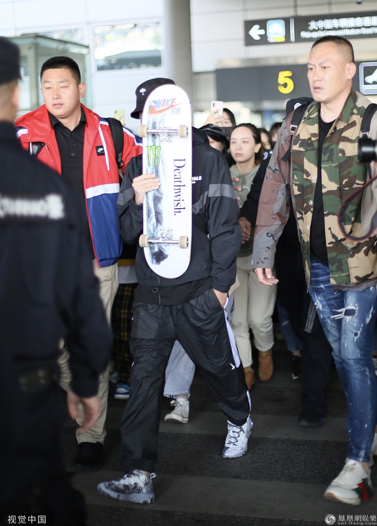 王一博机场获数百粉丝围堵,抱滑板“护体”俏皮可爱。