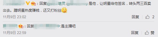 事情曝光后,该男子也被强大的网友认出,据网友爆料,该男子是一位主播,同时也是代拍,让明星给他签名,转头两三百卖出去。