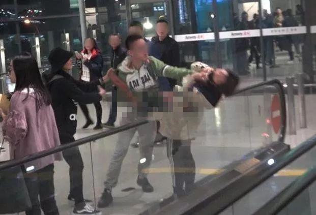 没想到现场突发意外,一位穿着绿色外套正在直播的男子,突然对baby的一名女粉丝大打出手。他一掌打飞了女粉丝的手机,并掐住了她的脖子,将她推到了传输带。旁边一位黑衣女子赶忙上前阻止,整个画面看起来非常惊险。