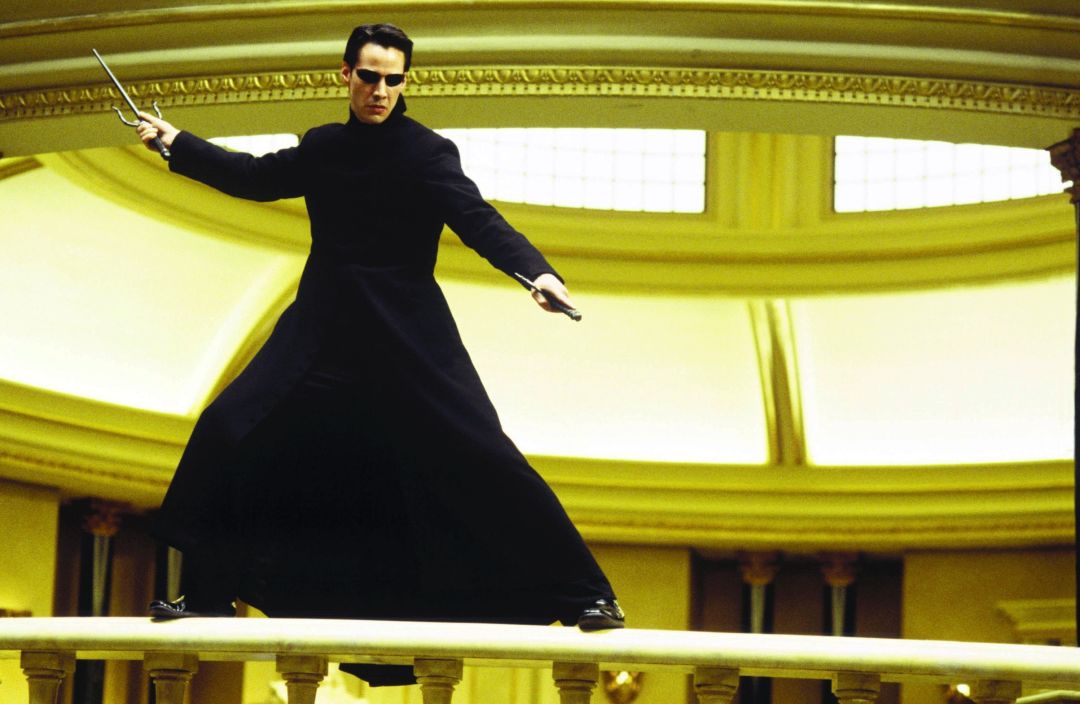 弯腰躲开子弹这个场景再经典不过了,为了拍这个镜头当时用了几百台尼康相机,绕着基努放了一圈,什么叫360度无死角?就是他呀。
