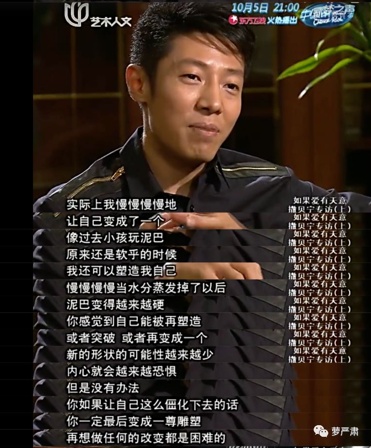 入行十年后,撒贝宁直言越做越感到自己的无知,也越害怕自己僵化:再这么下去,一定是变成一尊雕塑,再想做更多的改变都是困难的。