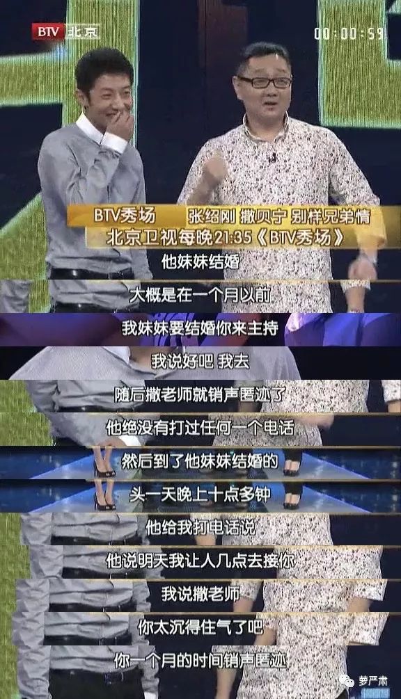张绍刚:撒贝宁亲妹妹结婚让我去主持,就提前一个月跟我说了一次,一个月之内都销声匿迹不给我打任何一个电话,头天晚上十点多再问我几点来接。