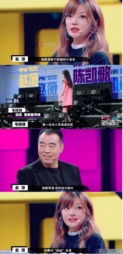 张云龙对阵陈小纭,两人演技相当,令赵薇难以抉择,于是她想了一个万全的方法,暗示张云龙选择陈凯歌,张云龙get到了她的提示,最终选择了陈凯歌。