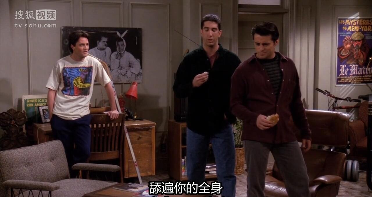 菲比问他,食物和性爱放弃哪一样,罗斯毫不犹豫回答食物。菲比紧接着发出了直击灵魂的一问:性爱和恐龙呢?我永远记得罗斯当场哽住的样子。