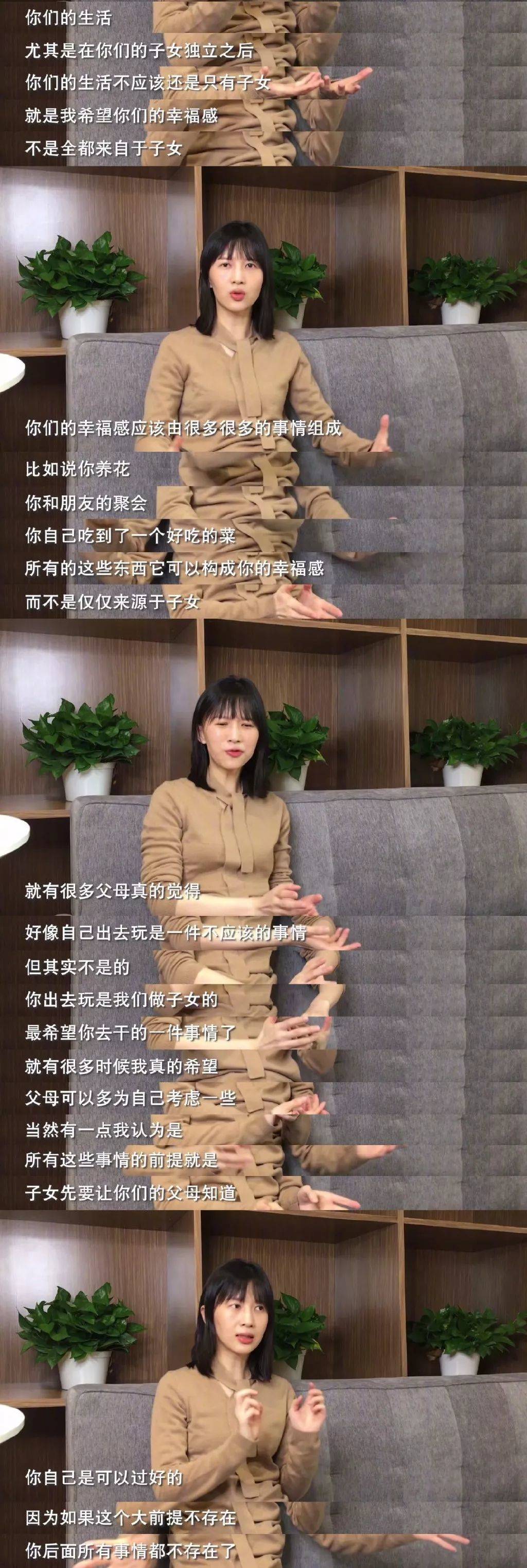 父母的幸福感不应该来自于子女,还有很多其他事情,如果自己能把自己的生活过好了,就是子女最幸福的事。