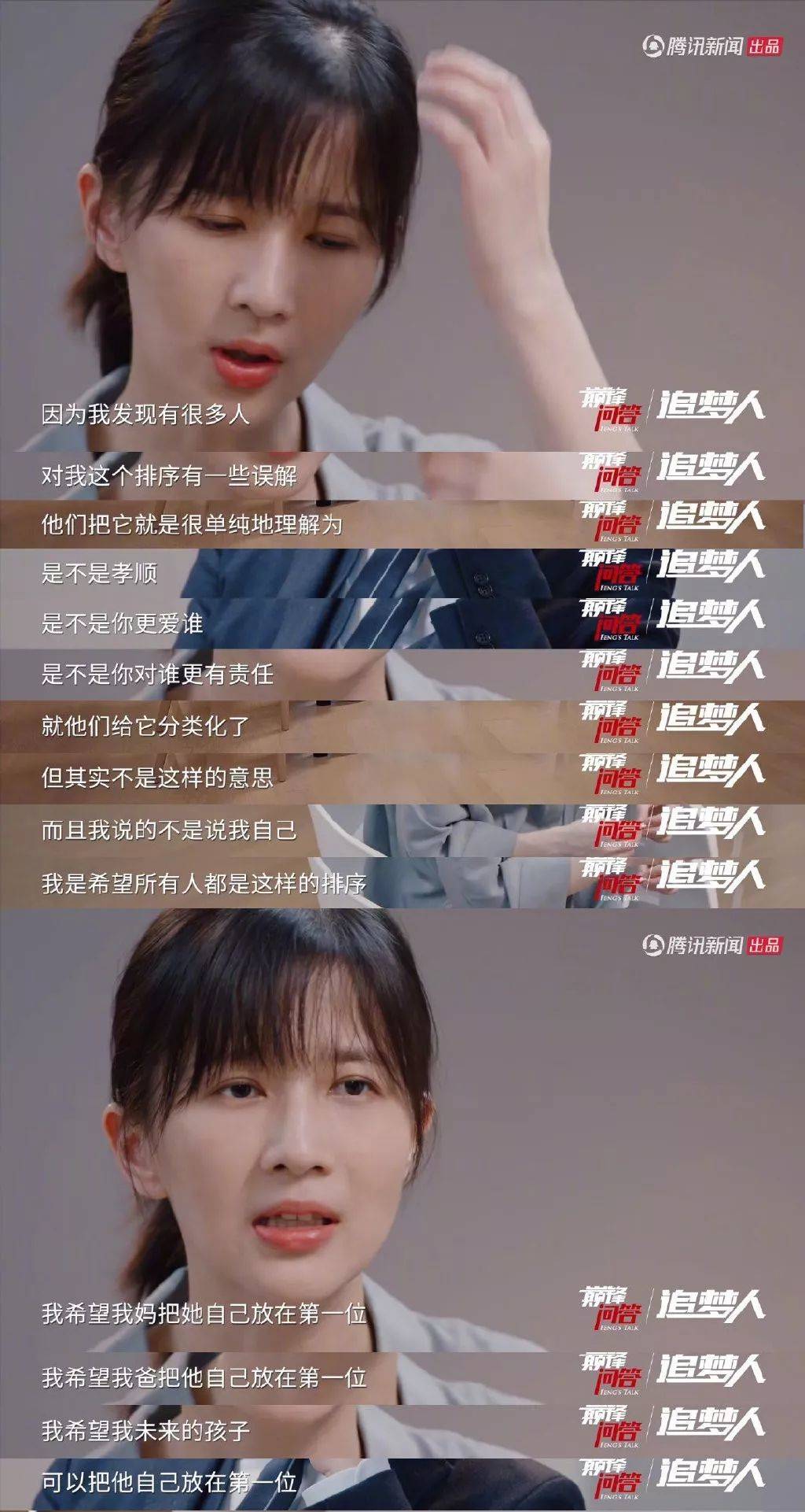 她还有一套自己认可的人生排序,自己一定是要排在第一位的。因为自己是陪伴自己时间最长的,要对自己好一点,其次是伴侣,而孩子和父母只是陪伴他们走一段路,剩下的路是他们自己走的。