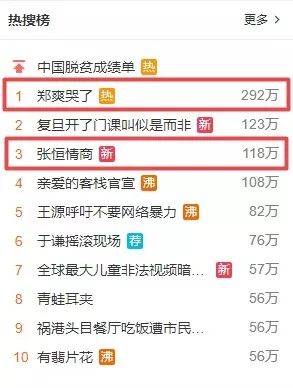 但是那一刻的张恒不想说话,他自己委屈,同时也理解郑爽的委屈,可他还是不下这个台阶,郑爽在副驾驶哭了起来。