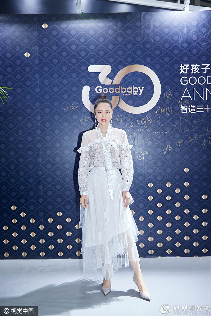 2019年10月16日,上海,董璇出席好孩子集团30周年品牌发布会。她身穿透视印花衬衫搭配白色纱裙,整体造型清新淡雅,在配上利落高马尾,显得既干练又不失甜美,十分迷人。 图片来源:视觉