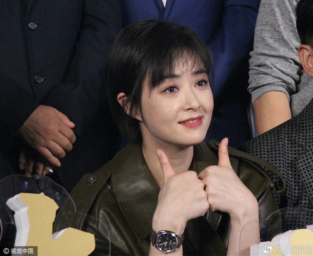 蒋欣梳干练短发穿皮衣美又飒! 图片来源: