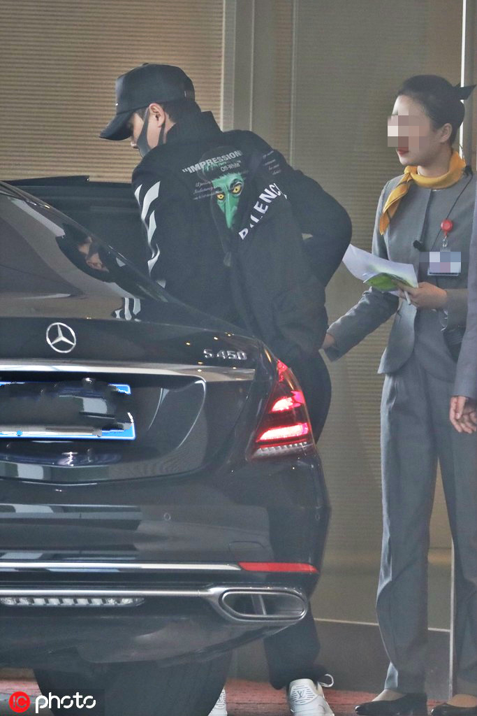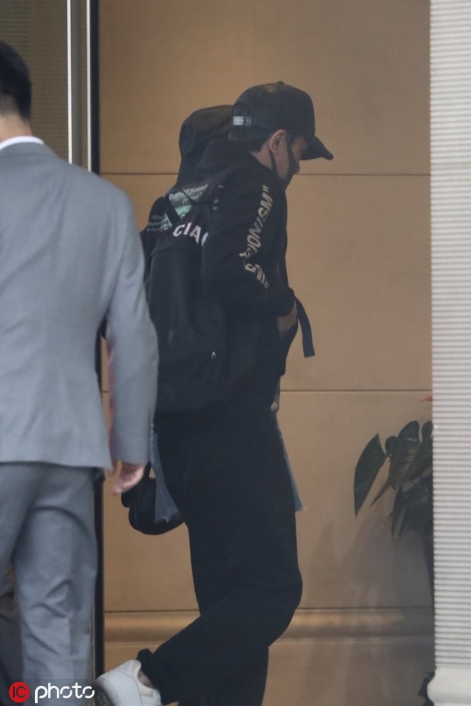 冯绍峰头戴棒球帽一身黑衣,下车亲自为老婆开车门。
