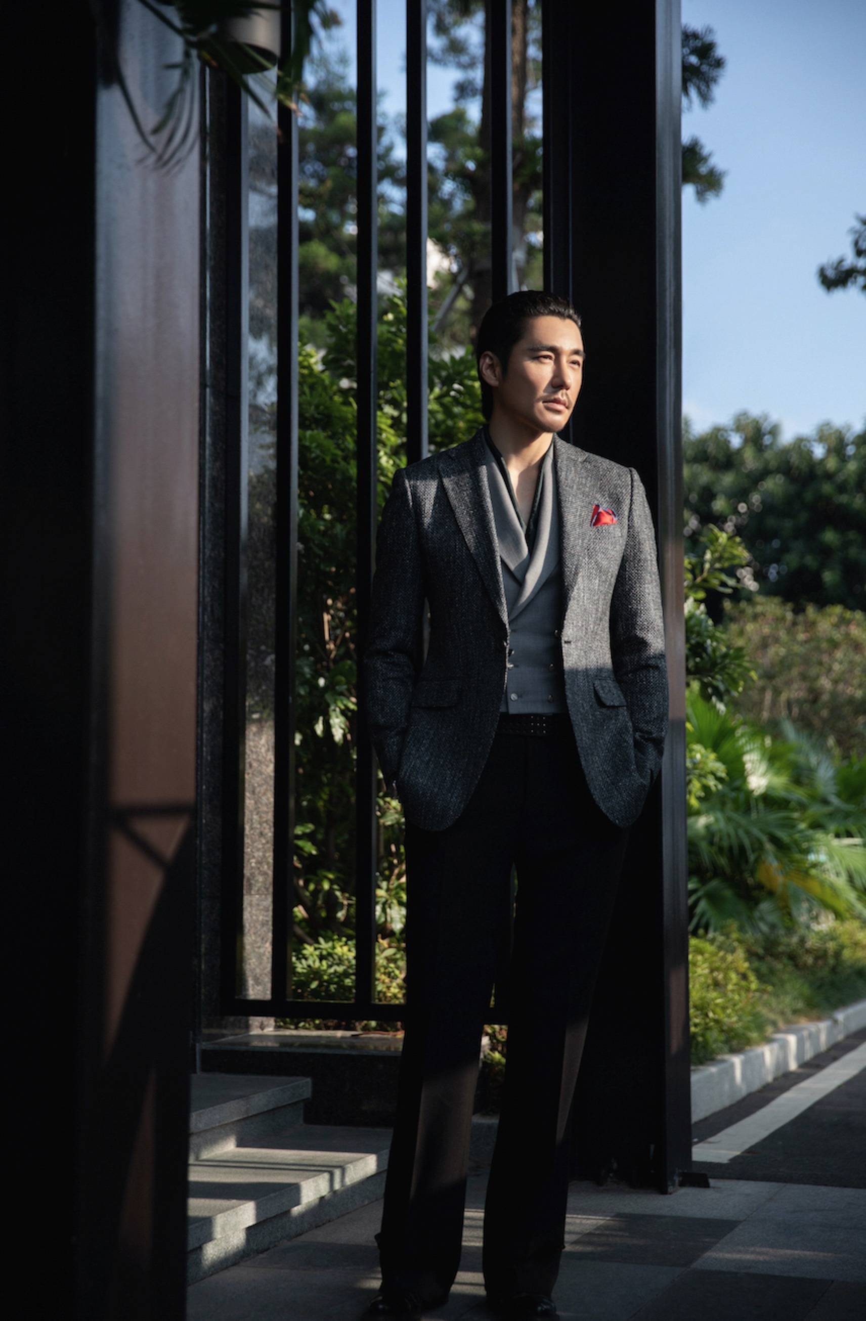 开幕式当晚,胡兵以一身精湛亚麻灰西装外套搭配黑色西装裤亮相红毯及开幕式活动,V领内搭于奢华面料之上尽展优雅风格,红色方巾装饰的胸花不仅与《古田军号》红色题材电影主题相匹配,更是于细节处衬托出胡兵“儒雅绅士”的品味与气质,用简约利落的搭配尽情诠释了自由无畏的时尚格调和岁月的洗礼与沉淀。这与胡兵在影片中饰演的刘安恭硬汉军人的形象有着极大的反差,也不得不让我们感叹胡兵作为出道了20余年的演员,戏里戏外、本人与角色切换自如的演技已经非常的扎实与成熟。