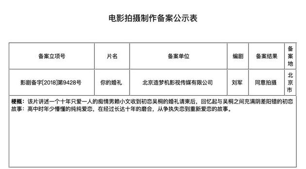 《你的婚礼》备案
