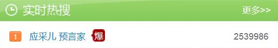 不过,应采儿却一战成名,以“预言家”的身份,勇登热搜榜第一名。