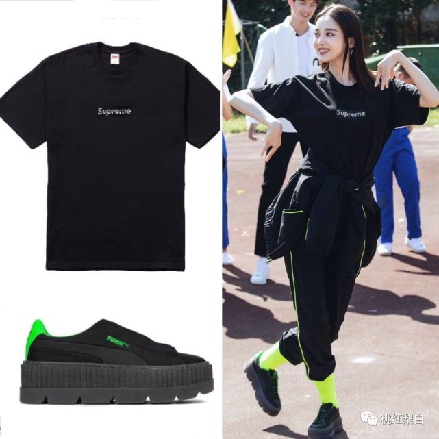 ▲外套&运动裤:Kirin / T恤:Supreme x Swarovski球鞋:Puma x Fenty by Rihanna