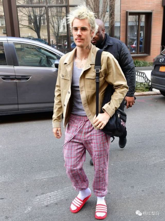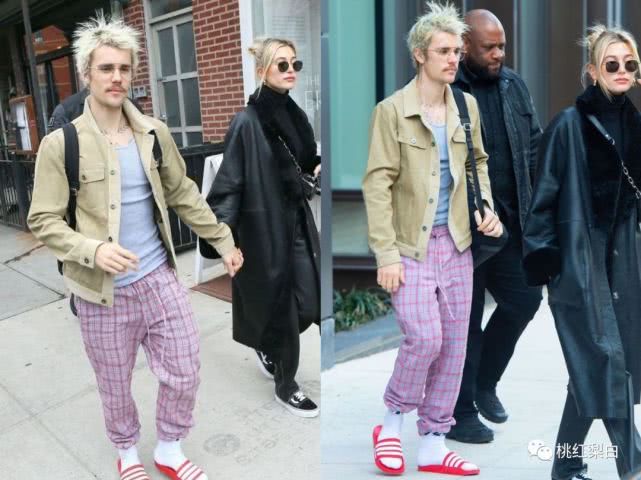 很久没来黑榜玩的比伯同学,今天终于出现了。 和新婚妻子海莉一起出街,给自己弄了个上下完全不一个风格的组合,单看上装,嗯还挺复古,结果继续往下一看,请问这个格子裤配拖鞋的造型是认真的吗? 行吧,你开心就好。