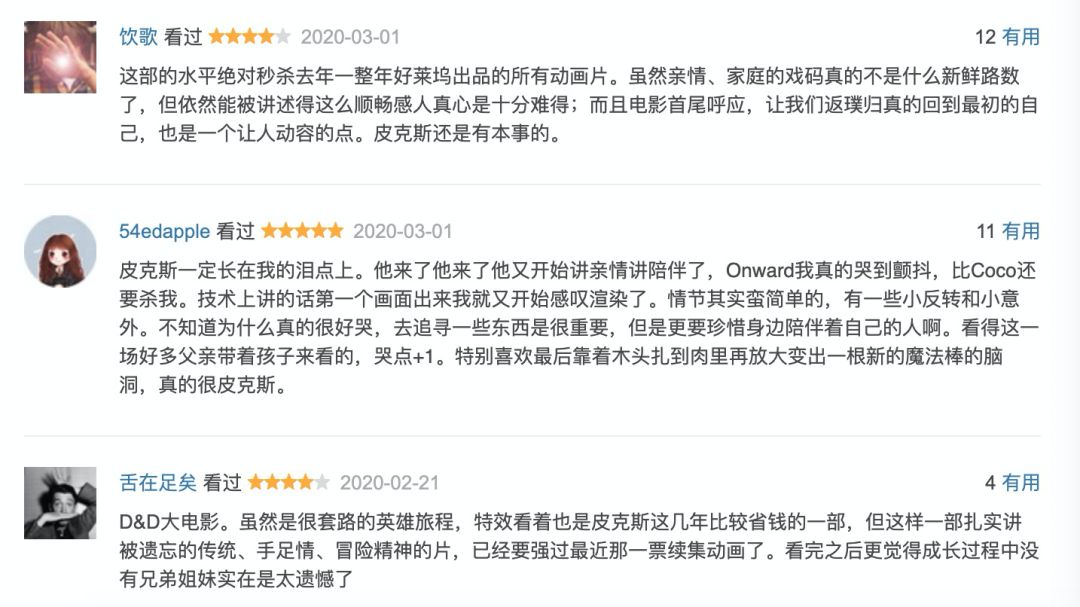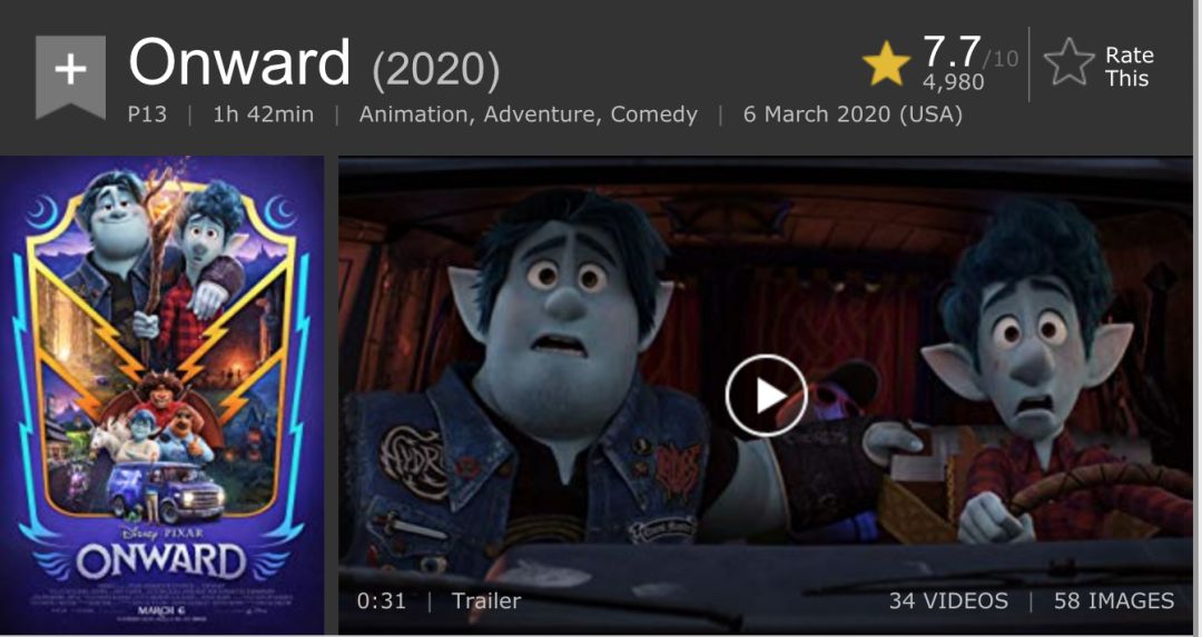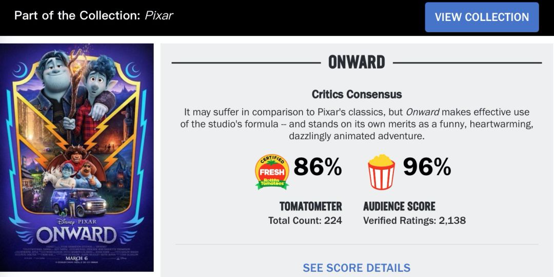 作为皮克斯出品的原创动画,在皮克斯自己的作品里比,《1/2的魔法》算不上特别优秀的一部,媒体评价也是7分左右。