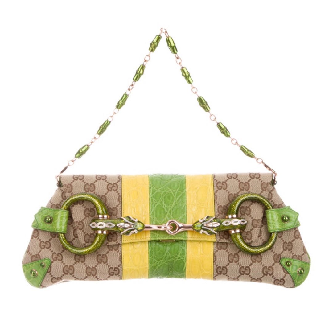 Gucci Large Horsebit Alligator-Trim Clutch