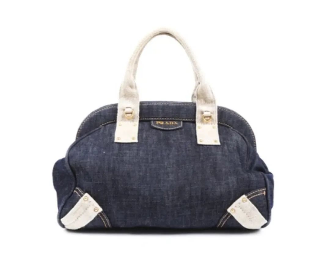 Prada Denim Logo Boston Bag