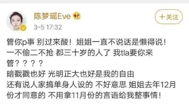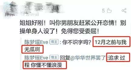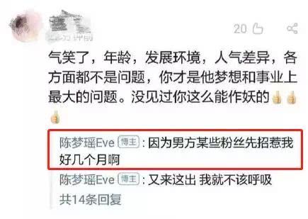 而这段恋情在正式官宣之前,其实陈梦瑶就因为在社交平台上手撕男方粉丝,自曝恋情,而因此上了热搜。当时她表示是因为男方粉丝辱骂她几个月,受不了了才选择反击。