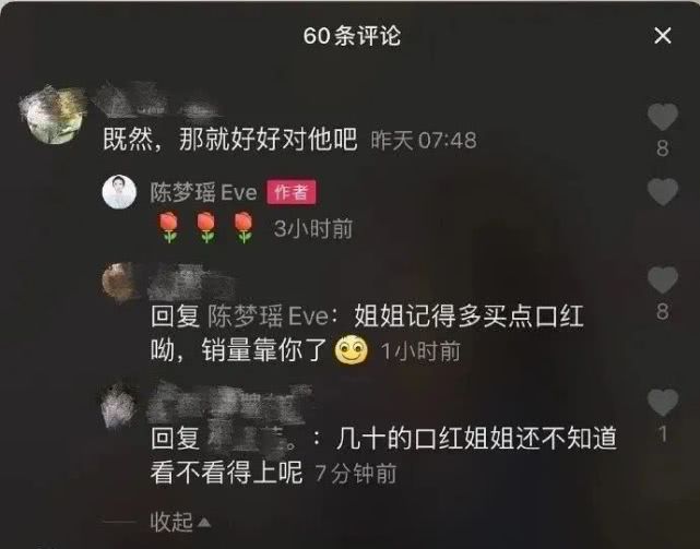 甚至在陈梦瑶随便更新的小视频下面,也都是有关口红的暗讽留言。