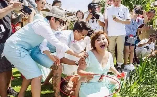 视频中以包贝尔为首的伴郎们作势要将伴娘柳岩扔入泳池,一片哄闹中贾玲挡在了柳岩面前,以幽默的方式化解了柳岩可能会走光的尴尬
