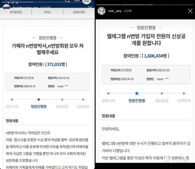 其中韩国的艺人们也都自发请愿,exo的伯贤和灿烈,更是先后在社交网络上公开自己的“请愿申请”。