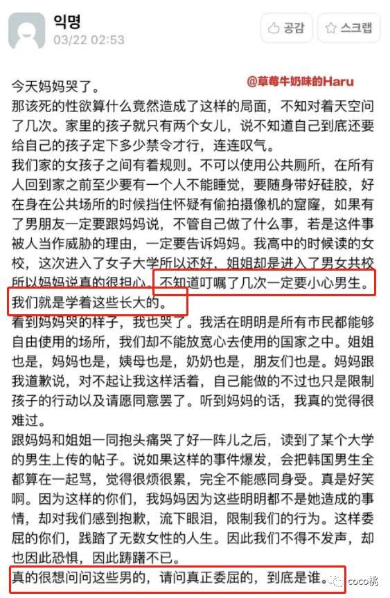 (图为韩国某女生在事件后的表述)