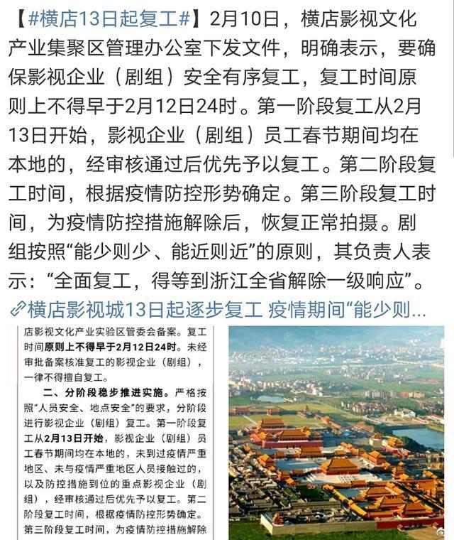 不过如今来看,为了控制人流量,横店最近复工的剧组依旧寥寥无几,不少准备复工的明星和工作人员在酒店里面进行自我隔离,经过隔离期之后接下来会有不少明星和剧组陆续开工了!
