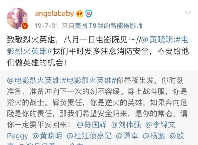 去年黄晓明的新电影上映,我们的天使大宝贝给他“积极”转发的电影宣传。