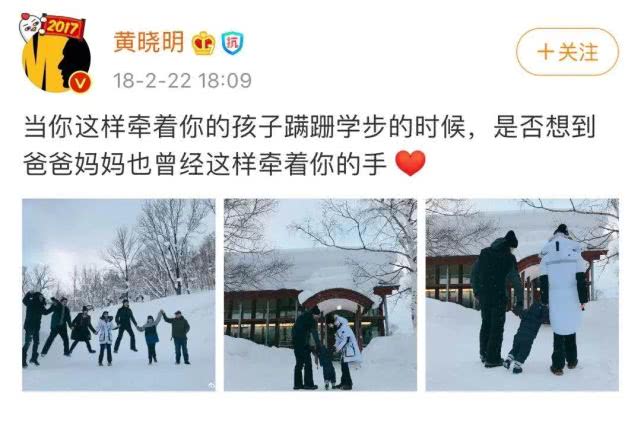 2018年,baby生日前后黄晓明和家人们一起前往滑雪,只发布了一家三口的合影。无论是从文案还是图片,我们都看得出一家三口其乐融融。但是,并没有黄晓明和baby的单独合影,也没有单独的生日祝福。