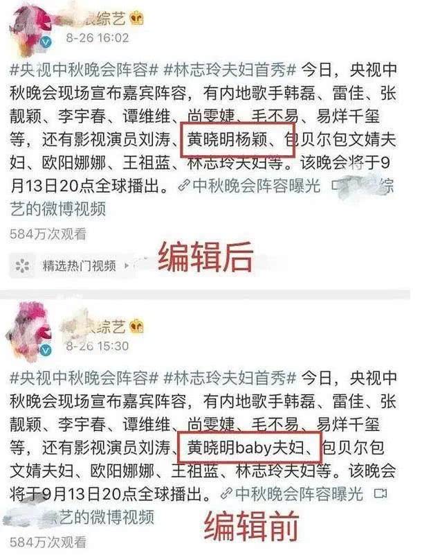 2019年某浪综艺的小编也是十分应景,将“黄晓明杨颖”和“黄晓明杨颖夫妇”两个称呼改来改去,好像生怕大家看不到重点,不断地敲黑板提醒着广大网友朋友们。