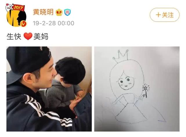 2019年2月28日,黄晓明发布了一条祝福微博,上面只有短短的四个字,“生快,美妈”。