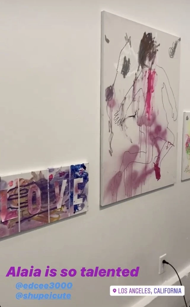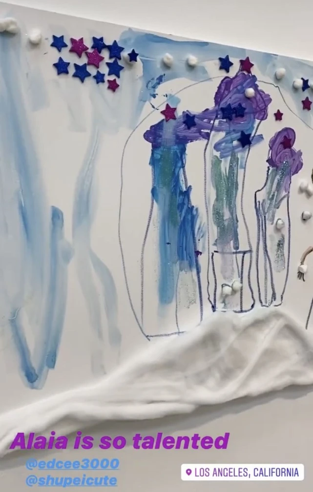 他经常在社交网晒出Alaia的生活照,其中晒得最多的就是Alaia画画的样子。