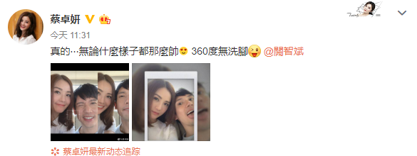 3月2日,阿Sa在个人社交网站晒出与关智斌的合照,并配文:“真是呢…怎么拍都这么帅,360度无死角。”