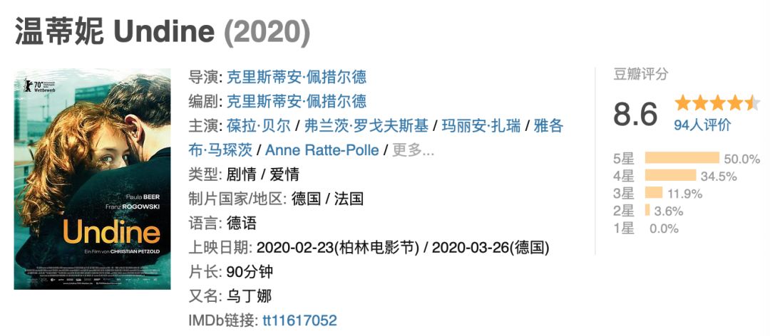 另一部颇受好评的爆款影片,我们也想跟大家分享一下,那就是摘得了柏林主竞赛的国际影评人费比西奖以及最佳女主角,影后银熊的《温蒂尼》