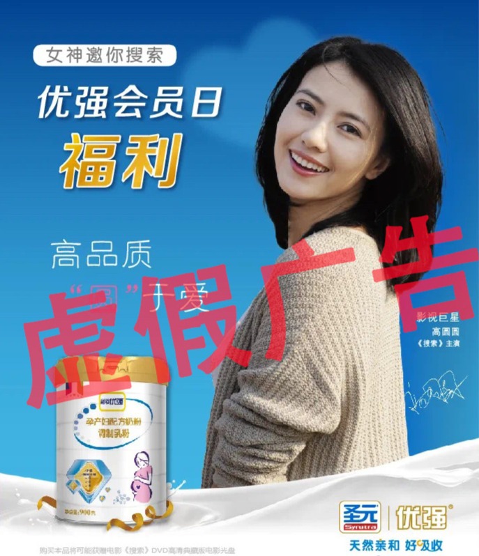 高圆圆工作室还发布了虚假广告图片,并谴责了侵权行为。