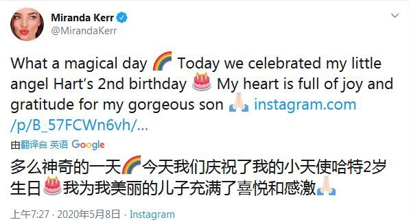 “1月至5月7日是米兰达可儿的第二个儿子哈特的第二个生