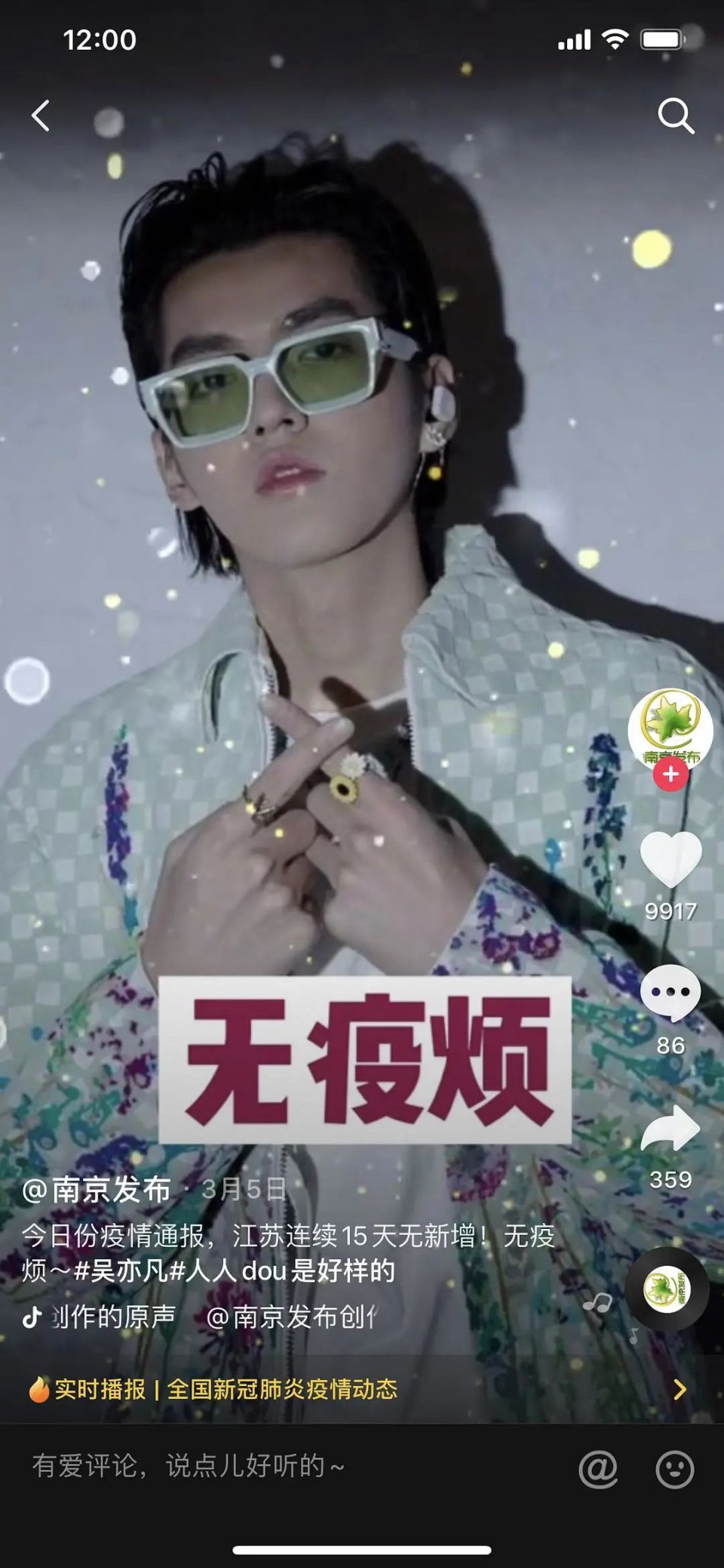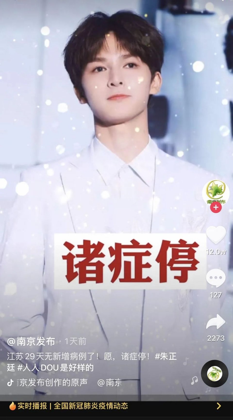 近期经过所有人的努力,新冠肺炎得到了很好的控制,对于每日更新的最新进展,南京发布的社交账号就出人意料地和艺人“一起”宣布了一个个好消息,以下画风高能