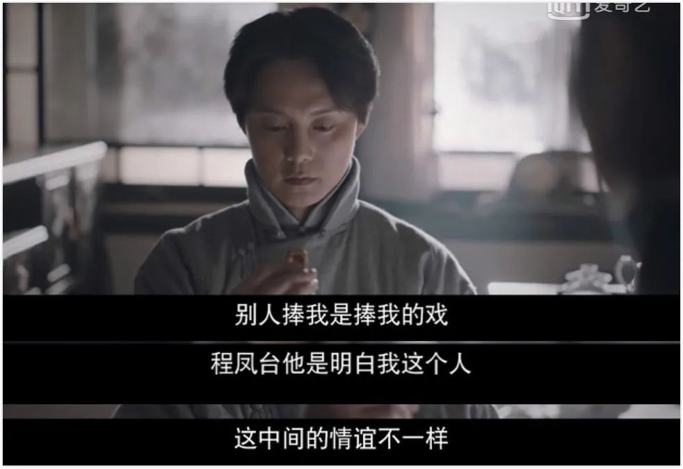 因为母亲而有戏曲情怀的程凤台被商细蕊的表演打动,被他对戏曲的奉献所吸引,并在他的影响下对京戏日渐痴迷。