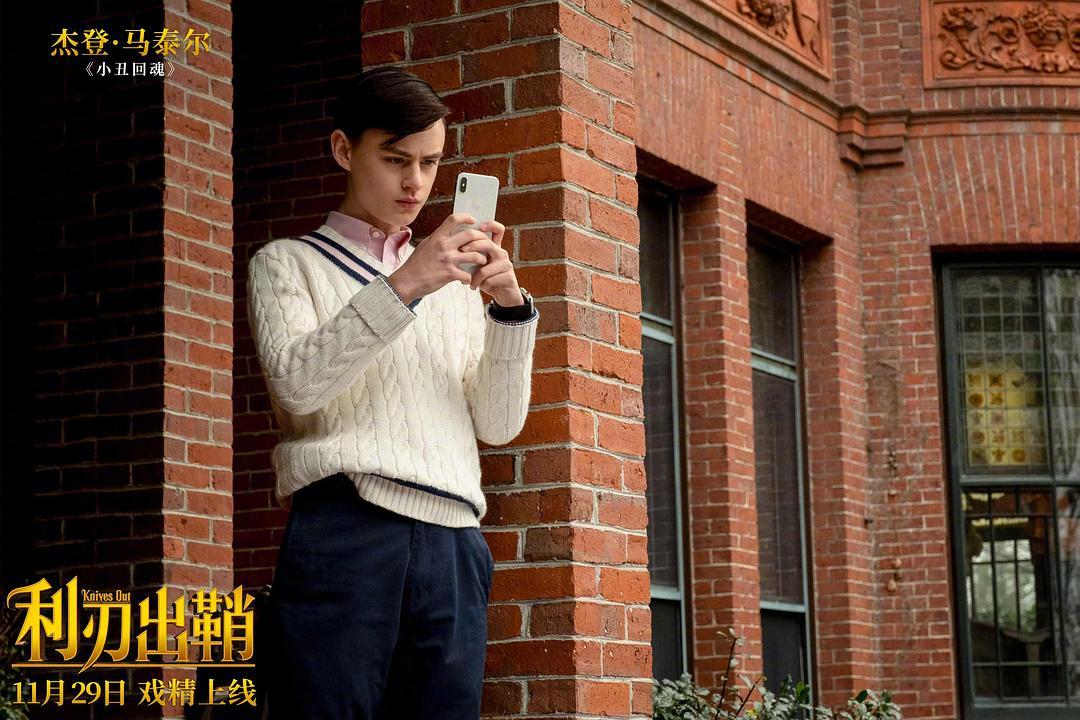 《利刃出鞘》海报,这个用iPhone的角色确实不是凶手