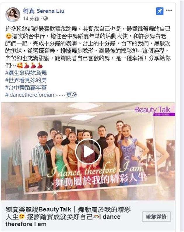 刘真自上周传出住院消息后,老公辛龙心系爱妻,已暂停所有工作陪伴刘真,而刘真社交平台从2月12日之后就没有再发文,不过刘真社交平台稍早则更新:“许多粉丝都说最喜欢看我跳舞,其实我自己也是,最爱跳着舞的自己”,同时晒出跳舞影片,并感性写下“这个过程,辛苦却也充满甜蜜,能够跳着自己喜欢的舞,是一种幸福”。