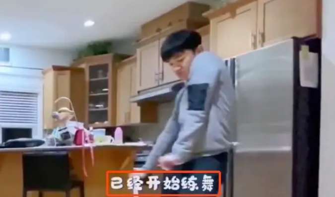 王祖蓝宅家与妻女一起跳舞。