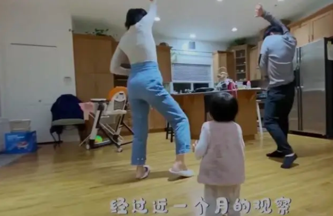 视频的旁白是一个小女孩儿清脆的声音:经过我一个月的观察,我怀疑我的爸爸妈妈可能已经失业了!尤其爸爸,已经开始跳舞,准备跨界了,十分逗趣。