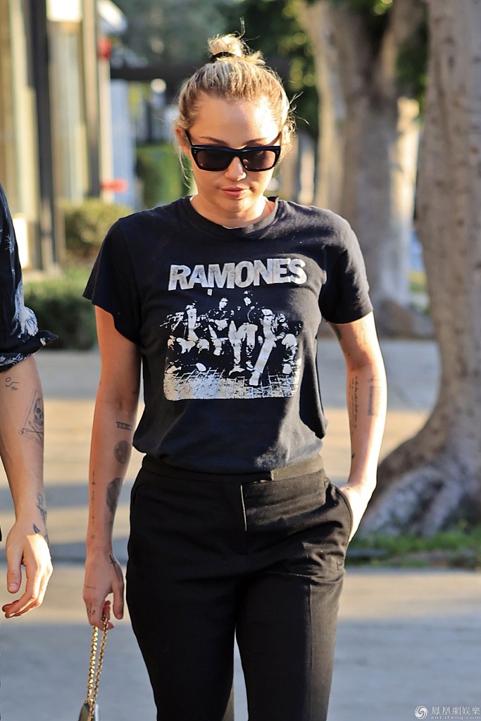麦莉·赛勒斯扎着丸子头,紧挽男友手臂十分恩爱。