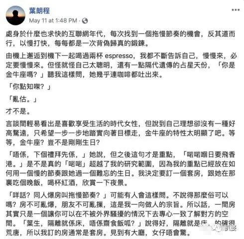这句“酸的讲句,虽然这个男人烚熟狗头这样,但似乎对她真的好。”怎么看怎么像说马国明(叶朗程还转发表示这不就是马国明)。