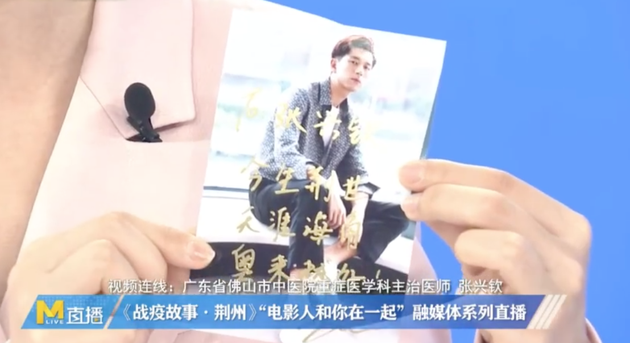 随后,现场播放了李现为张兴钦及前方医疗工作人员加油视频:“感谢你们这段时间以来,在前方的努力与付出,我为你和你的同事们加油,也请你们一定保重。”主持人还展示了李现亲手写的签名照:“今生荆世 天涯海角 粤来越好“。