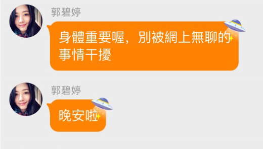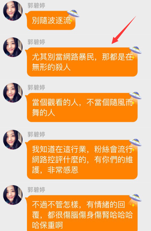 她不希望大家在这件事上充满戾气,在不分青红皂白的形势下就就用言语“杀人”,从聊天记录可以看出,郭碧婷的口吻温和亲善,很注重调节粉丝们的情绪,也很关心粉丝们的思想状态,骨子里的温柔和善良展露无遗,算得上是一枚合格的好偶像。